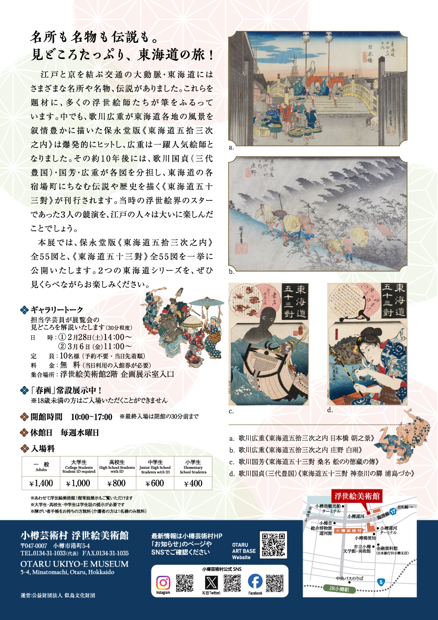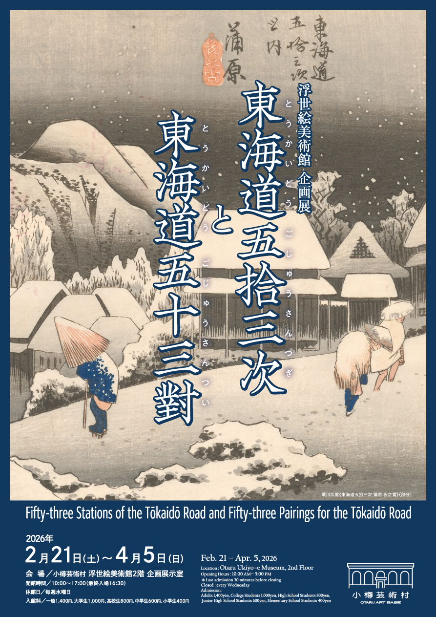 小樽芸術村浮世絵美術館では、2月21日(土)より 企画展「東海道五拾三次と東海道五十三對」を開催いたします。