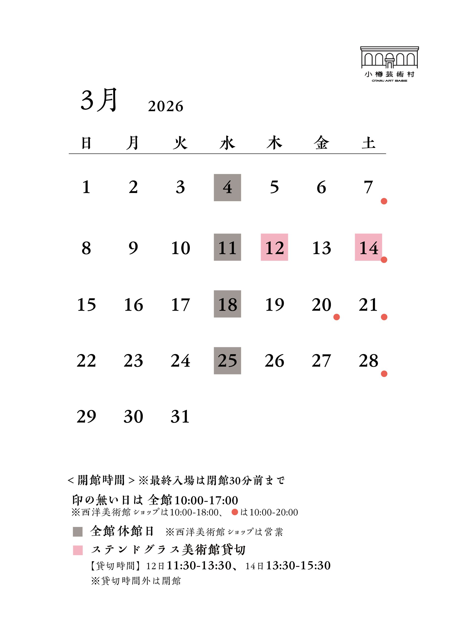 開館時間、休館日は変更となる場合がございます。 本欄にて最新情報をお知らせして参りますので、お出かけ前にご確認ください。